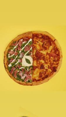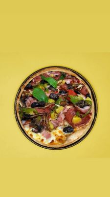 Tomato Base, Italian sausage, Pepperoni, Cherry tomato, Fior Di Latte, Olives & parmesan + basil.