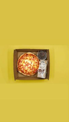 5". Made with a tomato base, pepperoni and Cheese. Served with a fruit box and mini brownie