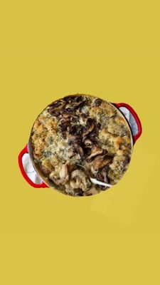 Creamy Maccheroni with a parmesan crust, enhanced by the rich aroma of truffle