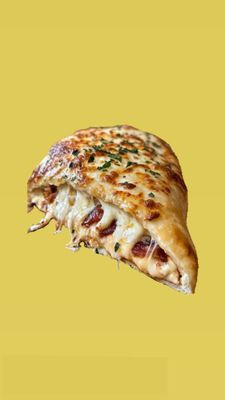 Folded pizza loaded with meat and mozzarella