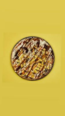 Choc base, banana, strawberry, and choc chips