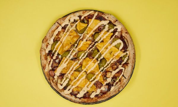 BBQ base, beef, bacon, caramelised onion, mushroom, fior di latte, and truffle aioli