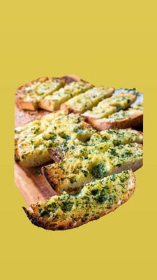 Ciabatta slices topped with garlic butter and parmesan for a savory side