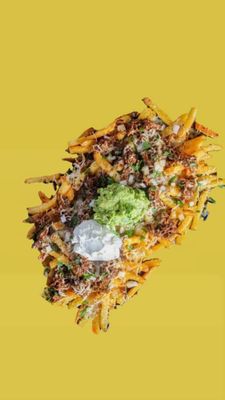 Fries, birria beef, melted cheese, jalapeños, peri salt, red onion, salsa side, and peri drizzle