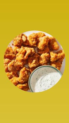 Chicken bites coated in crispy breadcrumbs.