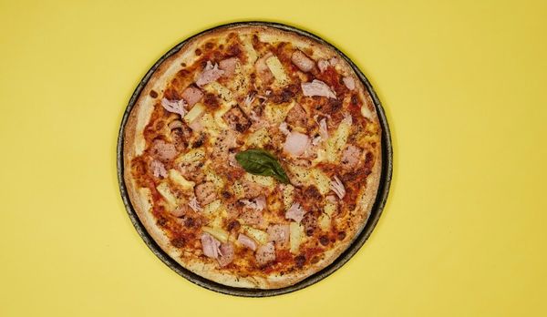 Tomato Base, Ham, Pineapple & Cheese Blend.